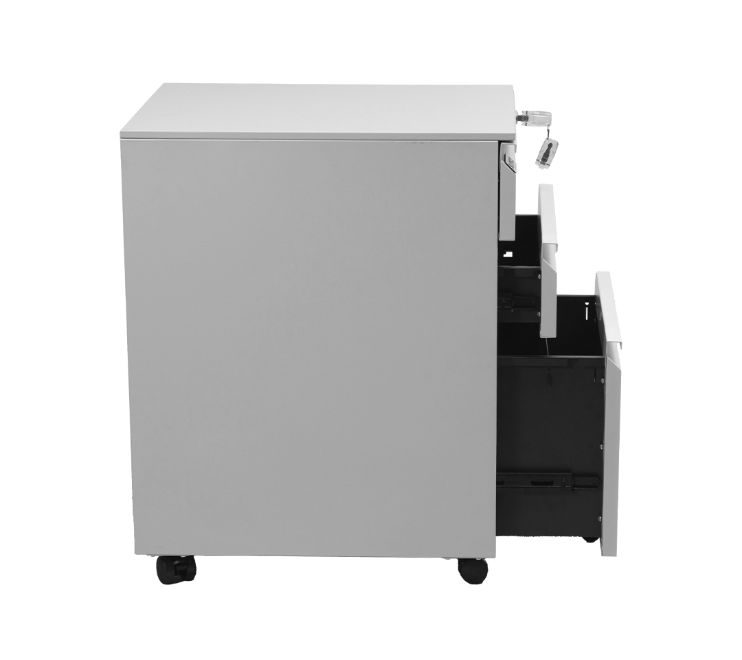 - Seguridad Incorporada: Uno de los cajones incluye un sistema de cerradura con llave, asegurando la protección de documentos confidenciales o pertenencias de valor.