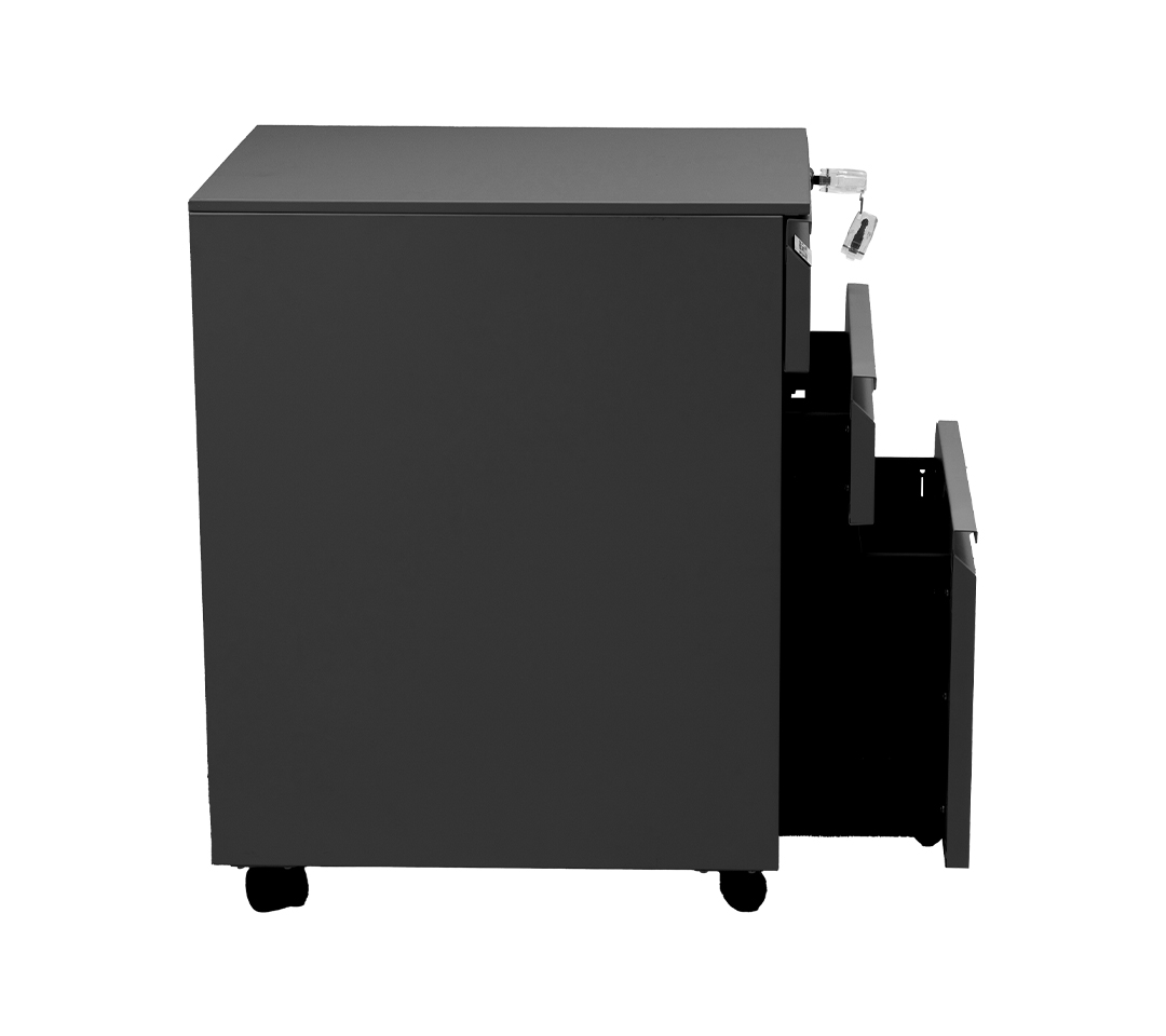 - Seguridad Incorporada: Uno de los cajones incluye un sistema de cerradura con llave, asegurando la protección de documentos confidenciales o pertenencias de valor.