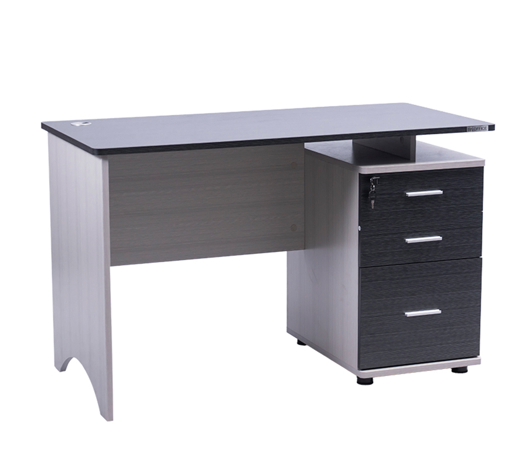 - Módulo de almacenamiento integrado: Tres cajones espaciosos para organizar documentos y útiles de oficina.