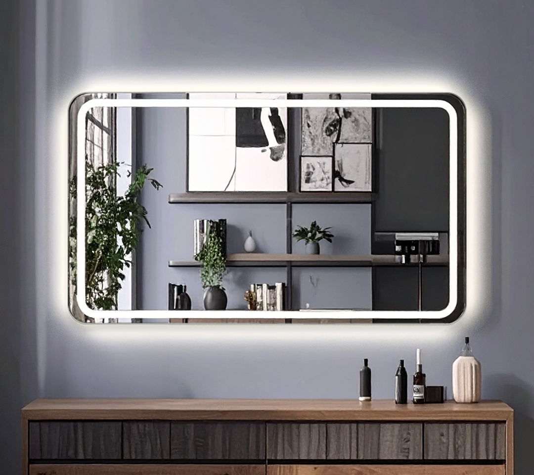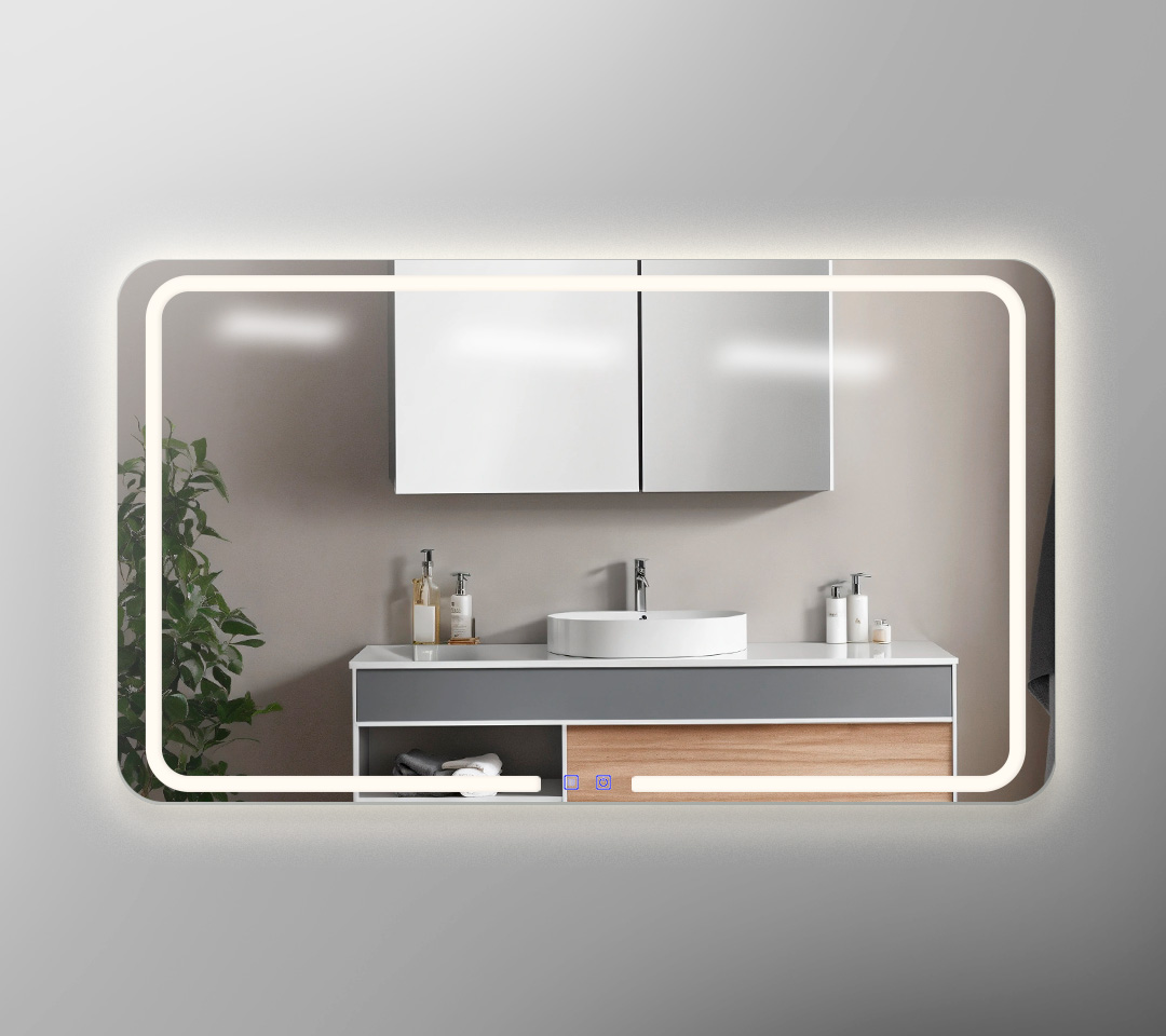 Botones táctiles: Equipado con botones táctiles integrados en la superficie del espejo para un control fácil e intuitivo de las funciones.