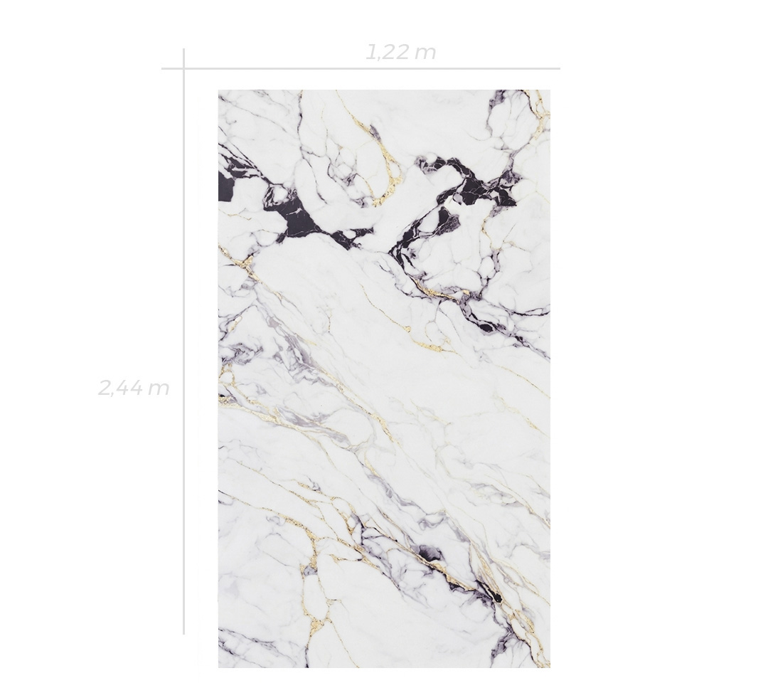 Es la alternativa inteligente al mármol exótico: misma belleza visual, pero con una instalación infinitamente más sencilla y económica.