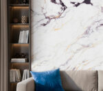 Inyecta dramatismo y elegancia artística a tus espacios con la lámina Blanco Aurora. Este diseño es una oda al lujo contemporáneo, presentando una base blanca pura atravesada por vetas audaces en tonos púrpura oscuro y gris carbón, complementadas con finos trazos dorados. Es la elección definitiva para quienes no temen destacar y buscan un revestimiento con carácter fuerte y definido.