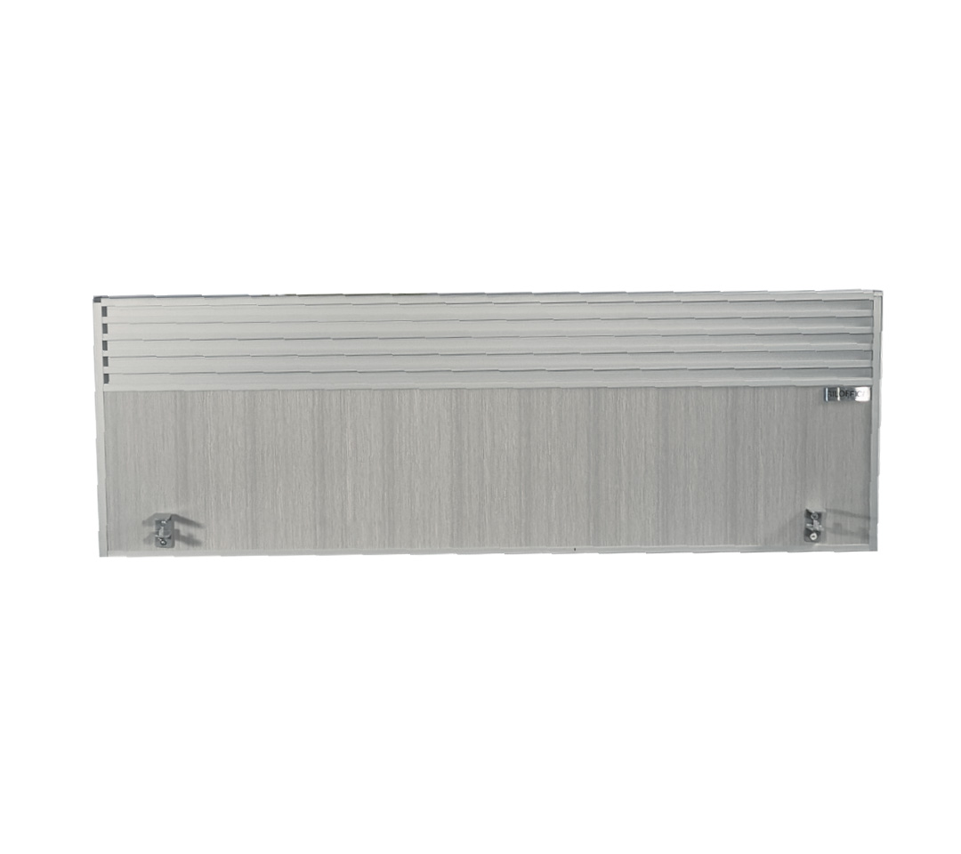 Con unas dimensiones ideales de 120×40 cm, se instala fácilmente sobre cualquier superficie de escritorio, proporcionando una barrera física y visual efectiva sin aislar completamente al usuario. Su diseño moderno combina una base sólida para privacidad en el nivel visual y una sección superior con ranuras que permite el paso ligero de luz y una ventilación discreta.