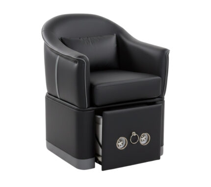 Funcionalidad Operativa: Incluye apoyabrazos integrados con detalles metálicos y un reposapiés ergonómico para una postura óptima del cliente.