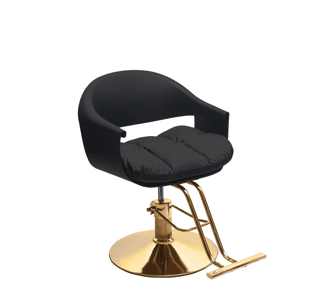 - Base Hidráulica de Alto Impacto: Equipada con una base redonda y robusta con acabado dorado (cromado en oro). El sistema hidráulico de alta precisión permite ajustar la altura con facilidad y suavidad, adaptándose a cualquier estilista y tipo de servicio.