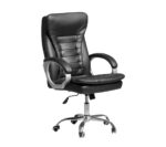 Los reposabrazos curvos y la cabecera ofrecen soporte adicional, mientras que el sistema hidráulico permite ajustes de altura fáciles. La base cromada con ruedas asegura movilidad sin esfuerzo en cualquier espacio de oficina.