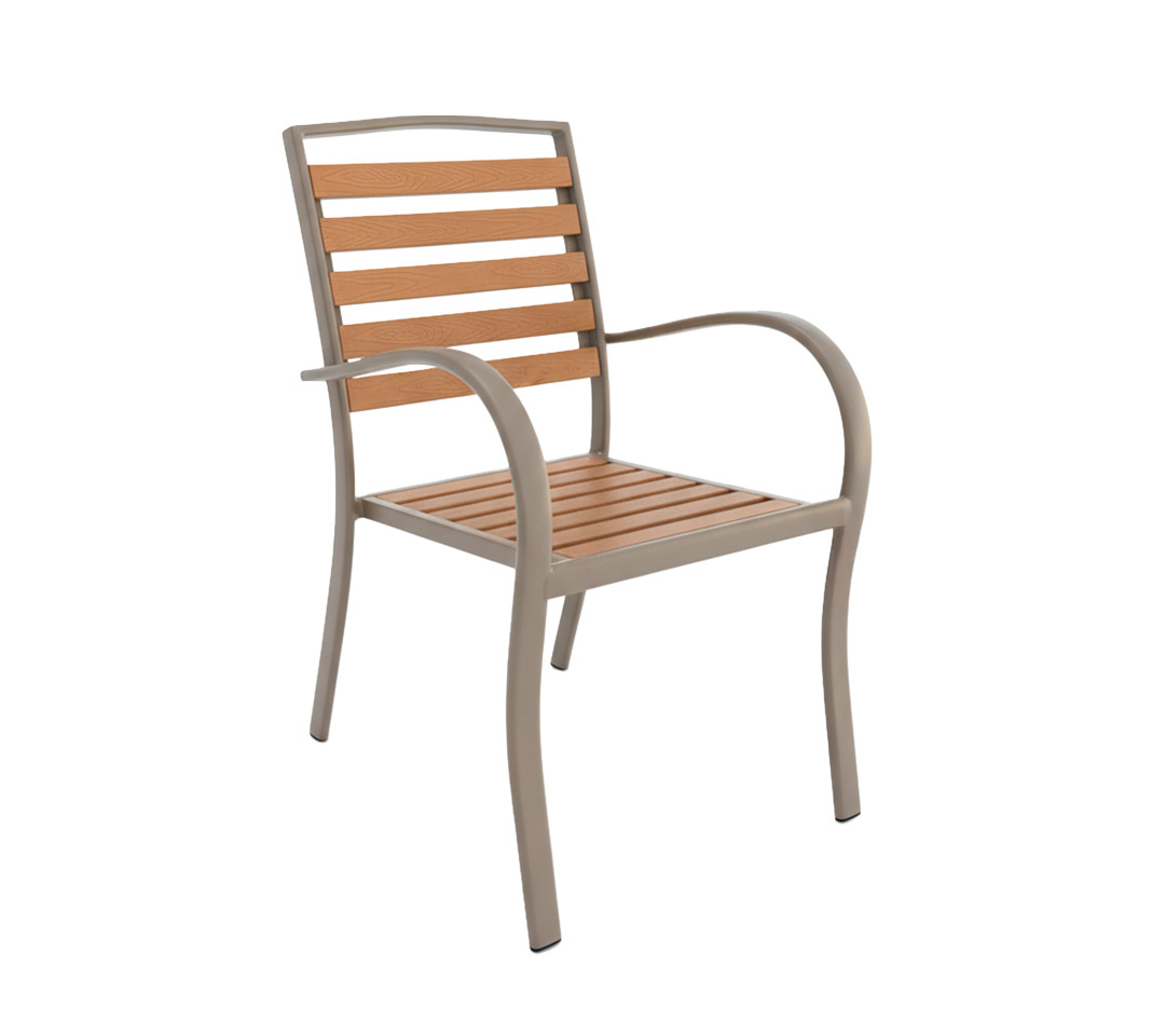 Diseño Ergonómico: Cuenta con un respaldo de listones horizontales que favorece la ventilación y se adapta a la curvatura natural de la espalda, junto con reposabrazos integrados de líneas fluidas para un confort prolongado.