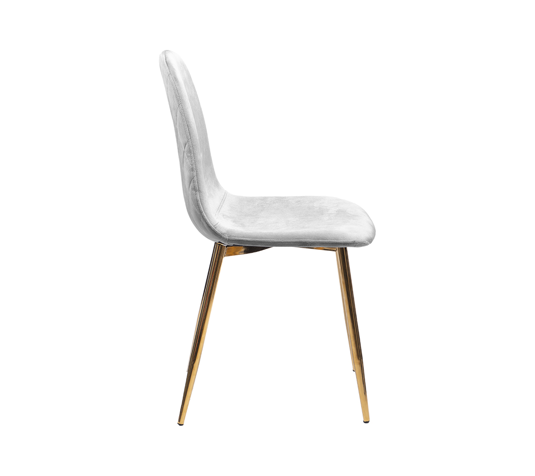- Materiales: Asiento y respaldo tapizados en un tejido suave al tacto, que ofrece comodidad y durabilidad. Las patas están fabricadas en metal con un lujoso acabado dorado que aporta un toque de sofisticación.