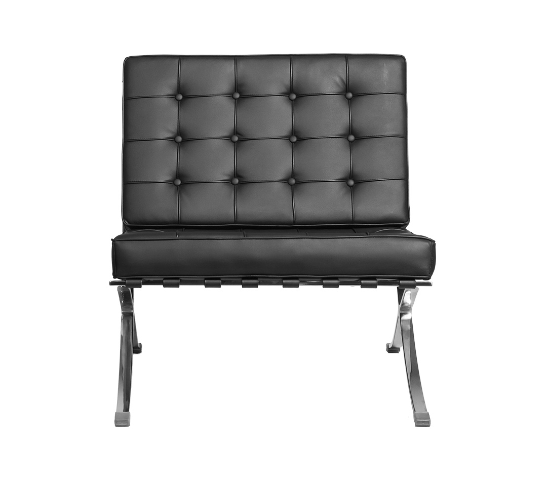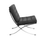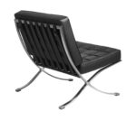 - Diseño Icónico: Con su asiento y respaldo acolchados, adornados con cuadrículas de cuero negro, este sillón ofrece una textura rica y un patrón geométrico que añade profundidad y carácter.