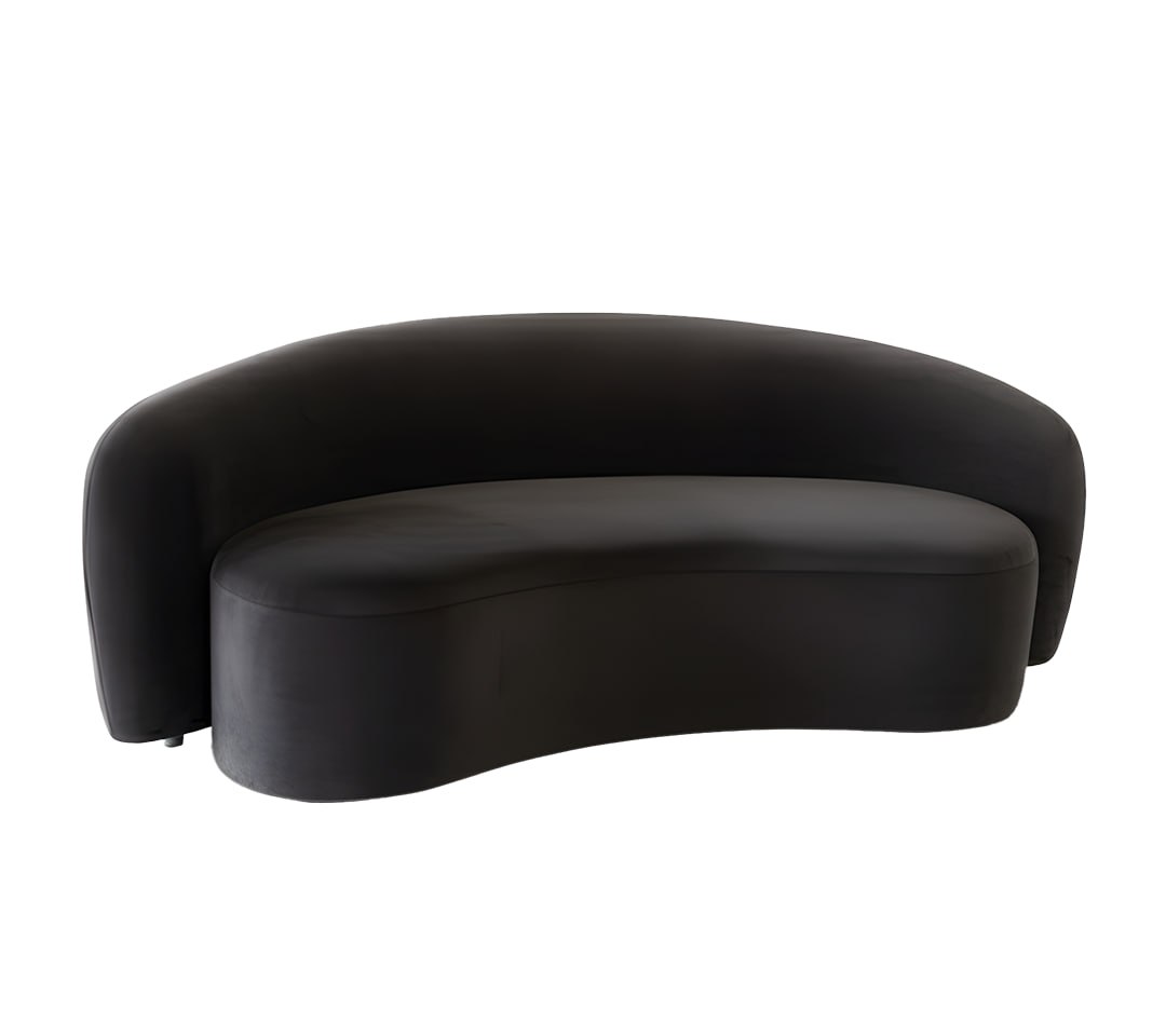 Consejo de Decoración: Coloque este sofá alejado de la pared, permitiendo que su forma curva se admire desde todos los ángulos. Es perfecto para dividir espacios en ambientes diáfanos.