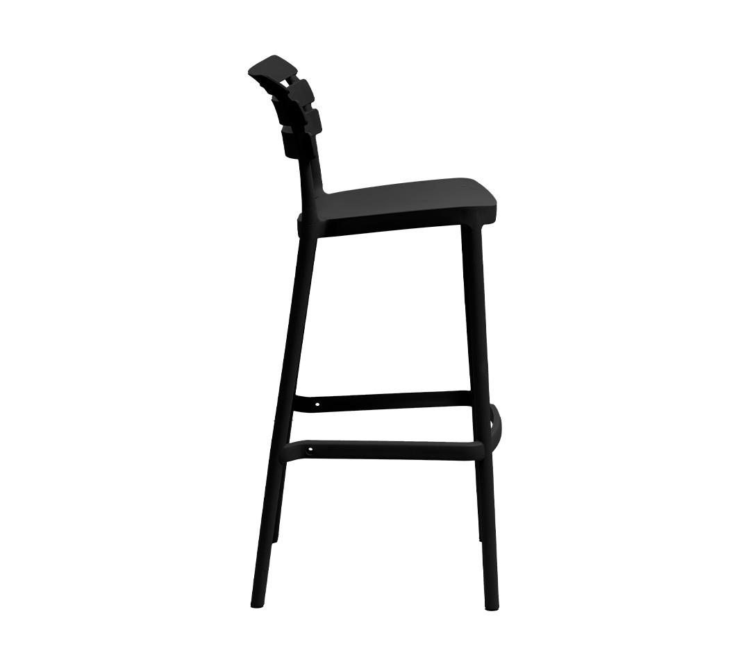 El TABURETE HELEN es la síntesis de funcionalidad y estética minimalista, diseñado para integrarse armoniosamente en cualquier área de trabajo. Su estructura elevada está soportada por cuatro patas delgadas y resistentes que se unen con sutileza a un asiento plano y un respaldo formado por tres listones horizontales, todos acabados en un tono gris uniforme que evoca profesionalismo. La ausencia de posabrazos y cabecera enfatiza su diseño simplista, ideal para espacios modernos y versátiles.