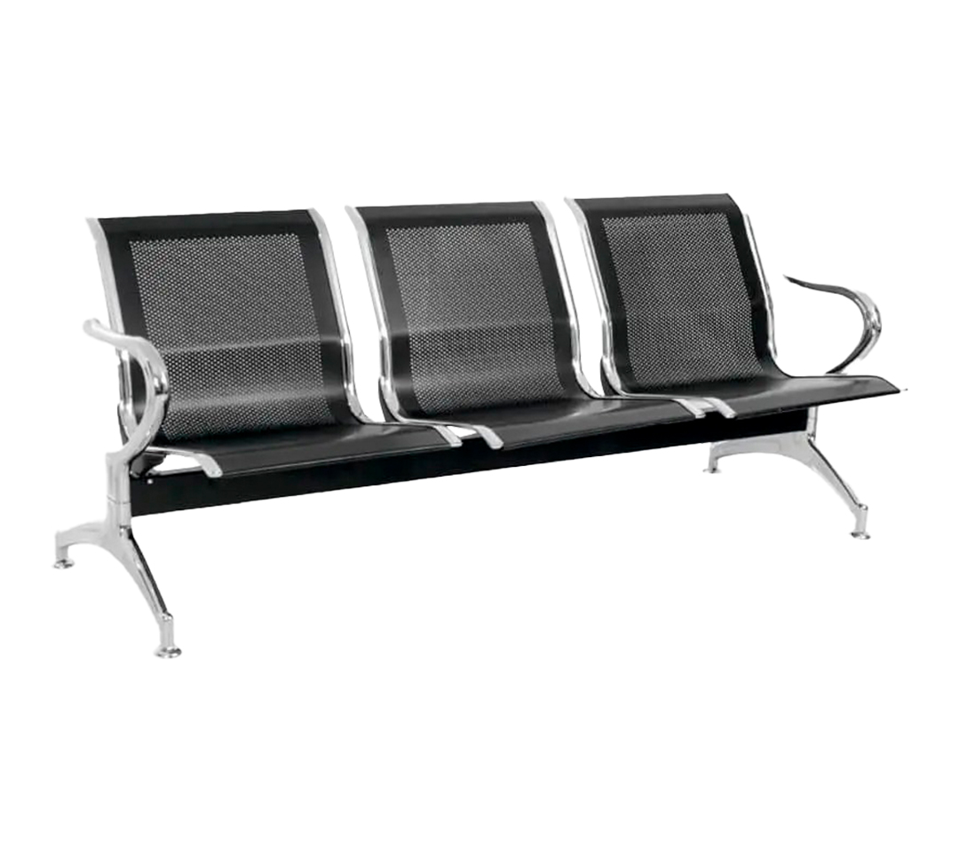 Asientos Ergonómicos Perforados: Fabricados en metal con acabado de pintura electrostática negra. Su diseño microperforado permite una ventilación constante, evitando la acumulación de calor durante esperas prolongadas.
