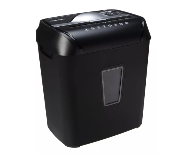 Destruye hasta 12 hojas de papel bond de 20 libras a la vez; también destruye tarjetas de crédito (una a la vez, a través de una ranura dedicada), grapas o sujetapapeles pequeños